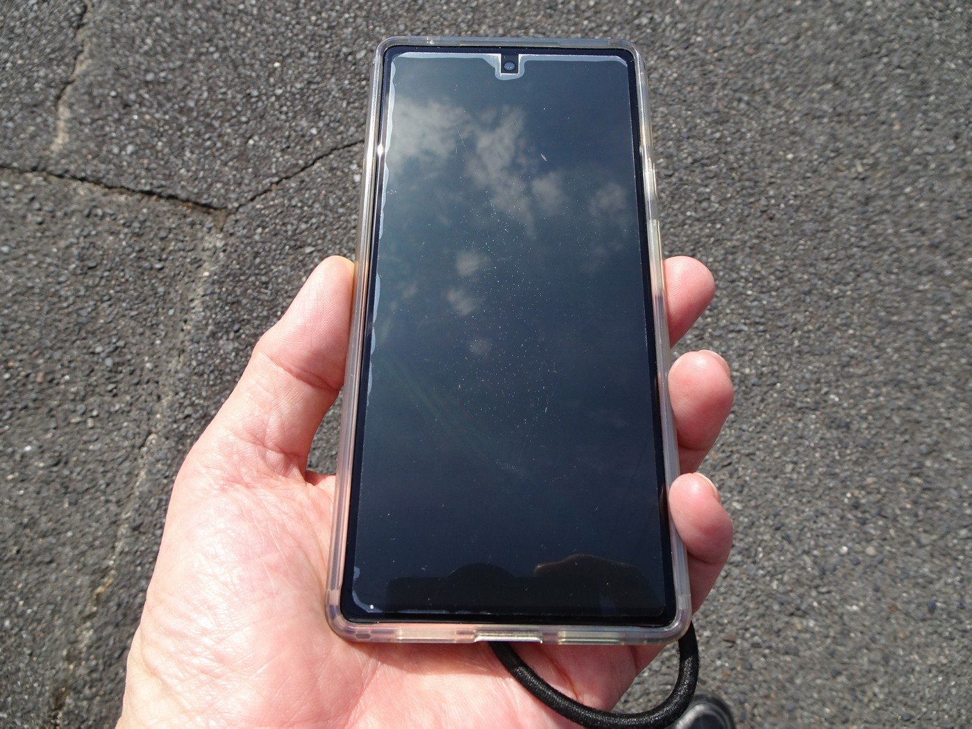 一通り観光を終えて、さて旅館に行こうかと旅館の近くの駅までは来て、旅館に向かって歩き始めたのですが、途中で道が合っているのかどうか、Googleマップで確かめようとスマホを見ると直射日光の下で見たせいでスマホの画面が真っ暗で何も見えません。