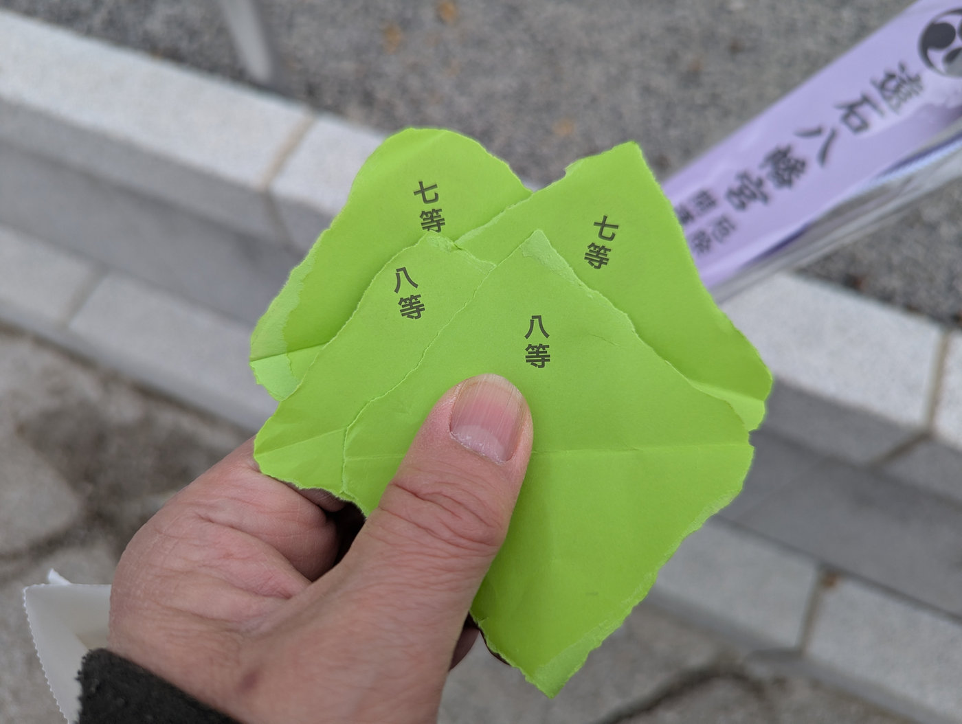 予想通り7等と8等でした。これが2000円分の景品です。ですがここで高額当選などしてしまいますと、今年1年の運をこれでを使い切ってしまうような気がするので、このようなところで運を使わなくてよかったと思っておきましょう。