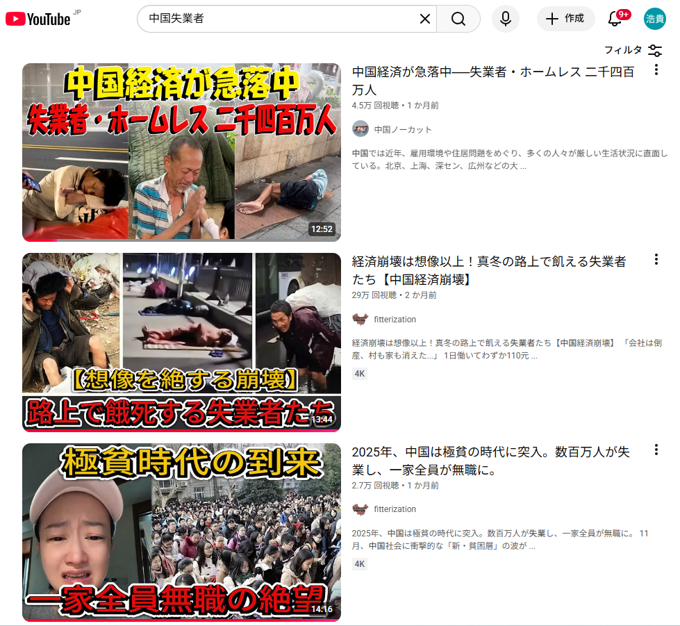 「今、中国の経済めちゃくちゃになってますよね。若者の失業率が40%を超えたとか、ホームレスが爆発的に増えて街中に大量のホームレスが寝てる映像とかYouTubeにすごい数上がってますよね。」