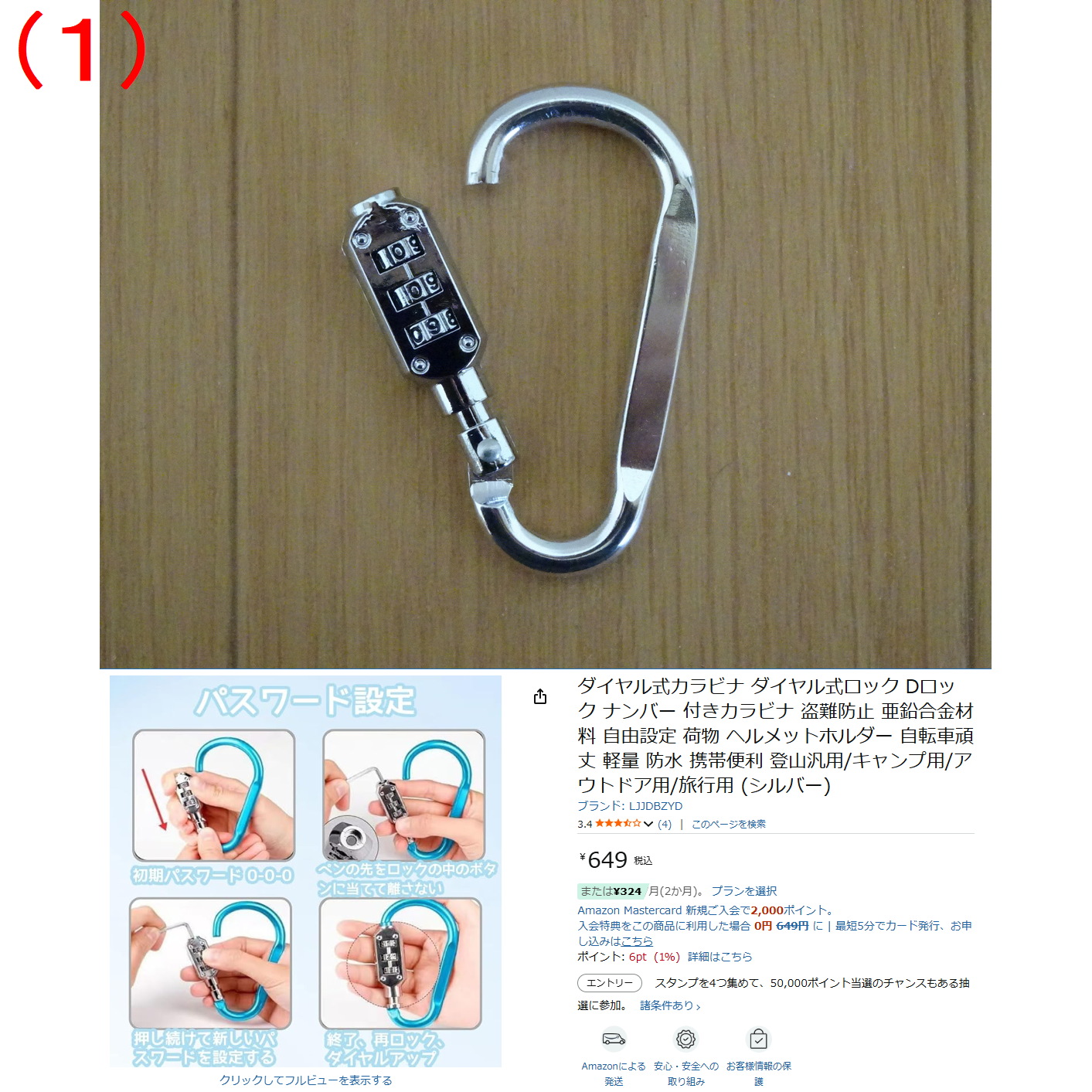 バイクのヘルメットホルダーに使おうと思いましてダイヤル式のカラビナをアマゾンで買いました。